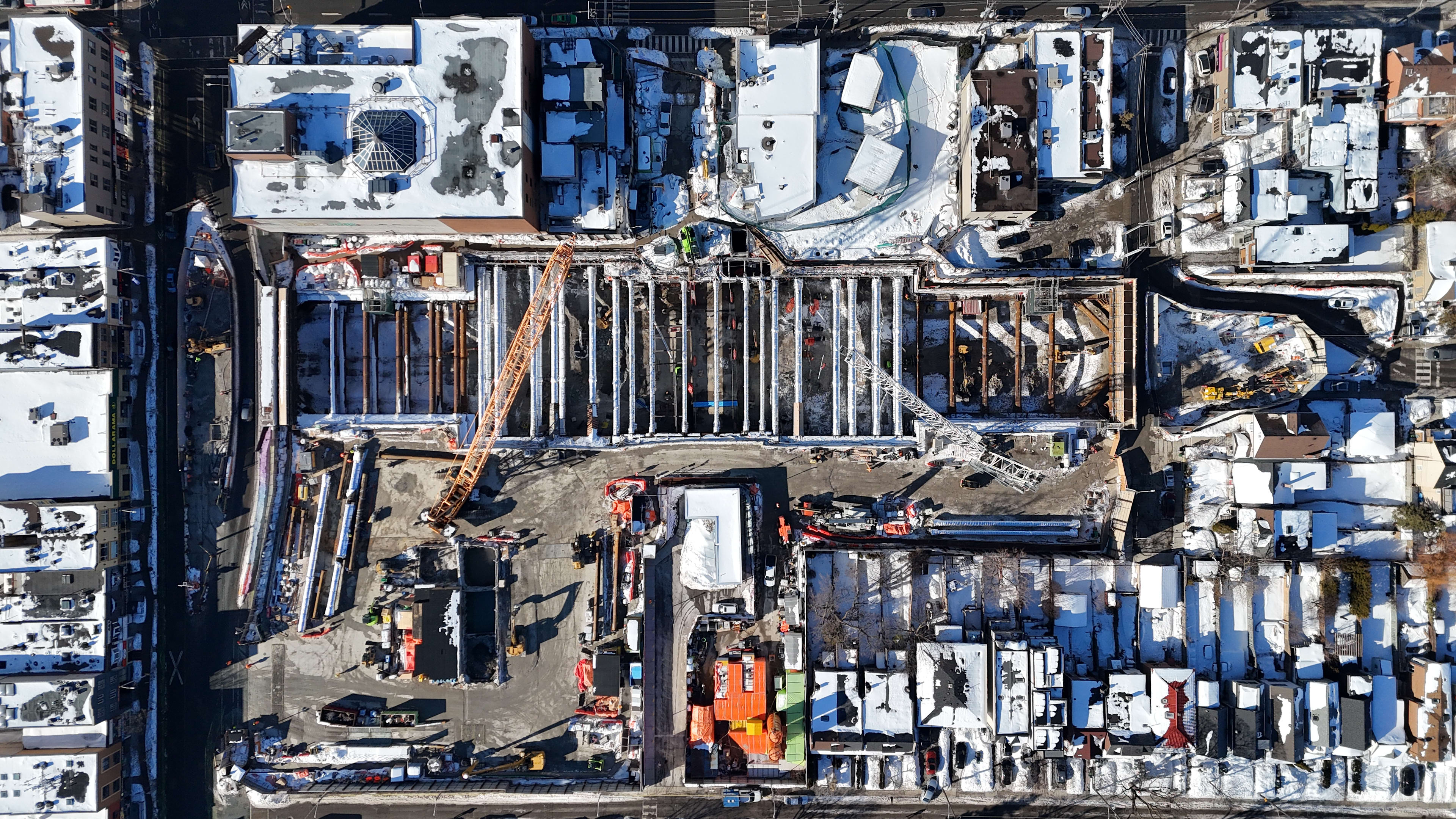 Nous sommes récemment entrés dans une autre phase majeure des travaux de construction sur le site avec le début de l’excavation. Durant cette étape, nous creusons d’abord jusqu’à la station de la TTC existante pour l’exposer et renforcer ses fondations dans un processus connu sous le nom de « la reprise en sous-œuvre ». Après cela, nous continuerons à excaver en dessous pour créer une caverne souterraine pour la future gare de la ligne Ontario et les tunnels. Une fois que la caverne est creusée, nous établirons un chantier de construction sécuritaire, fonctionnel et à grande échelle sous terre.